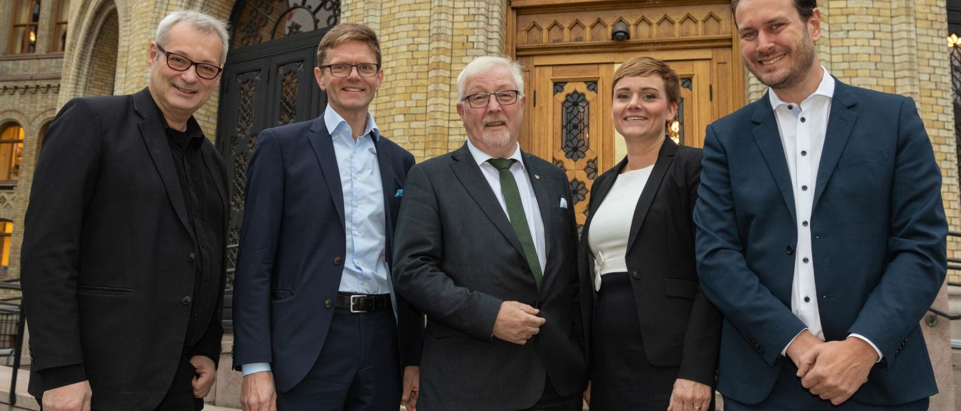 Fra venstre: Jarle Eknes (HELT MED), Terje Breivik (Venstre), Geir Sigbjørn Toskedal (KrF), Margret Hagerup (Høyre) og Helge André Njaastad (FrP). Foto: Hans Kristian Thorbjørnsen.