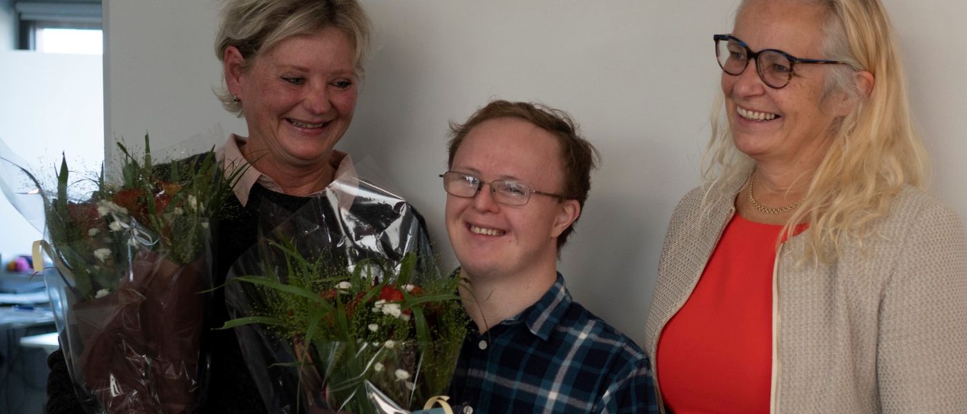 Den nyansatte arbeidstakeren og hans fantastiske fadder mottok velfortjente blomster.