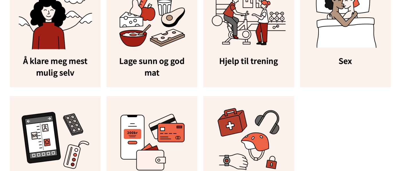 Bilder fra kategorien "Hverdagen" fra den nye nettsiden på Helsenorge med lettlest materiale.