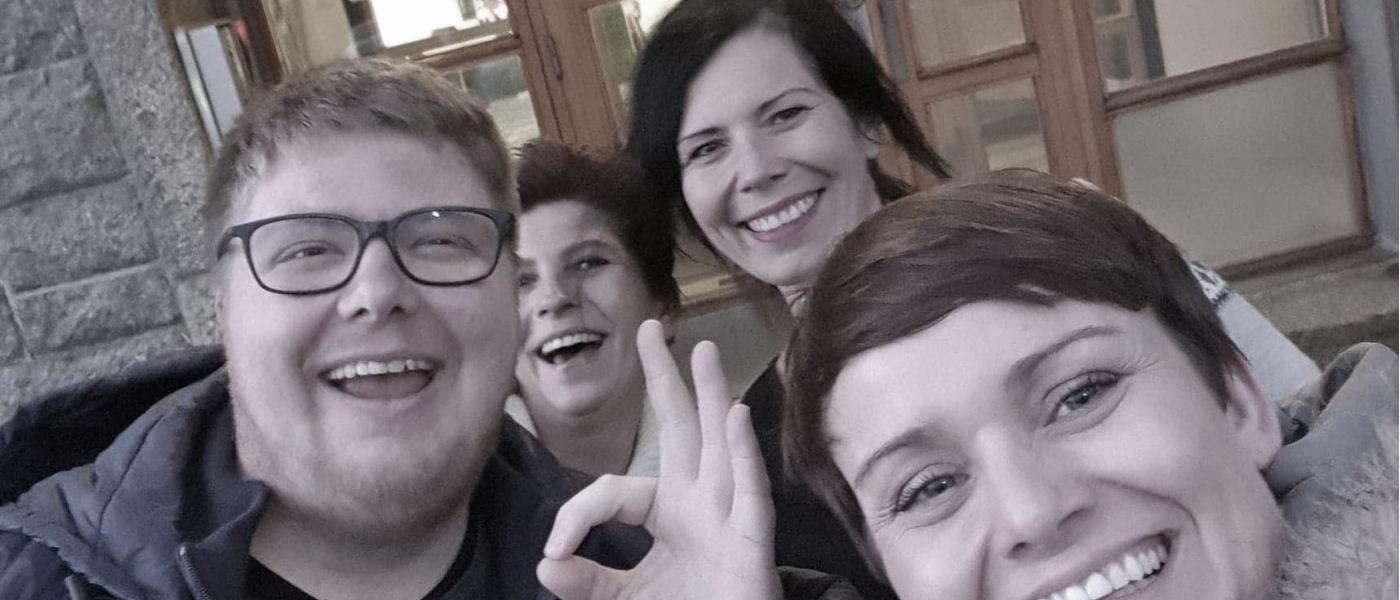 Fra venstre: Johannes Tveitnes, Ingrid Marie Solvang, Hanne Kluge og Margret Hagerup. Selfie etter en meget god innsats i NRK Rogalands direktesending. De hadde det like gøy som det ser ut som på bildet.