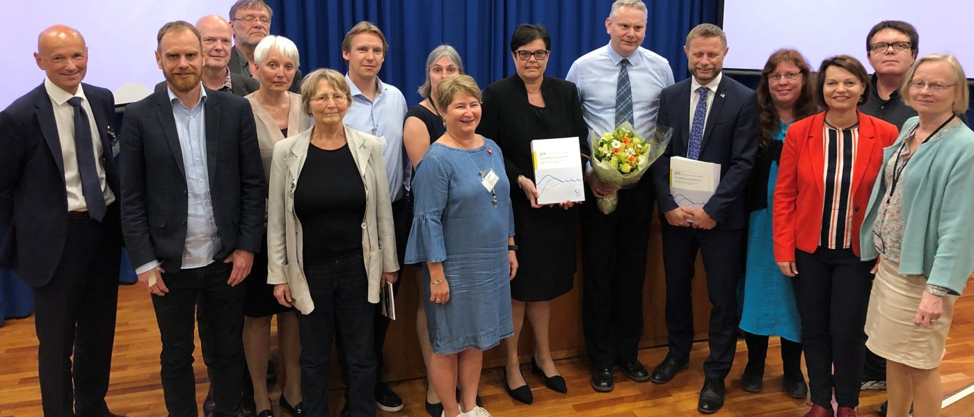Bildet: Tvangslovutvalget m.fl. Bildet er fra overrekkelsen av NOU´en, til helseminister Bent Høie. Bjørn Roar Vagle er nr. 2 fra venstre. Til høyre for ham (andre rekke) står Randi Sigurdsen. Begge er medlem av Tvangslovutvalget og NFU.
