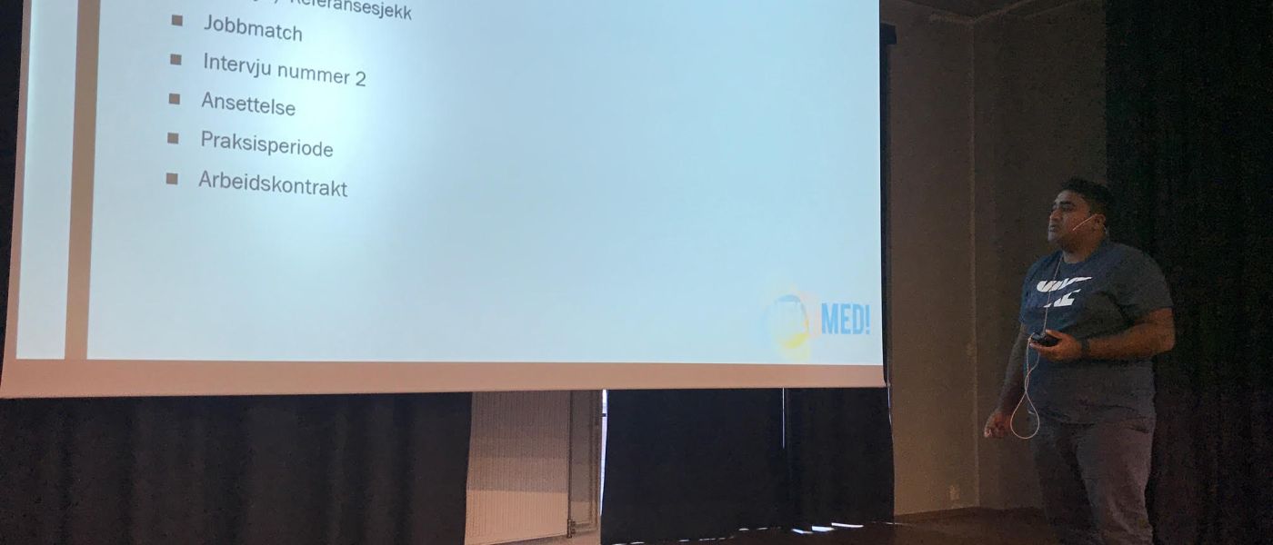 Da var det flott at HELT MED ble invitert til å holde forelesning. Fra HELT MED møtte jobbspesialist Elisabet Askjer Nordahl (Sens), seniorrådgiver Audun Moen og ikke minst Haran Vimalachandran som gjennom HELT MED fikk jobb på McDonald´s på Alnabru i Oslo.