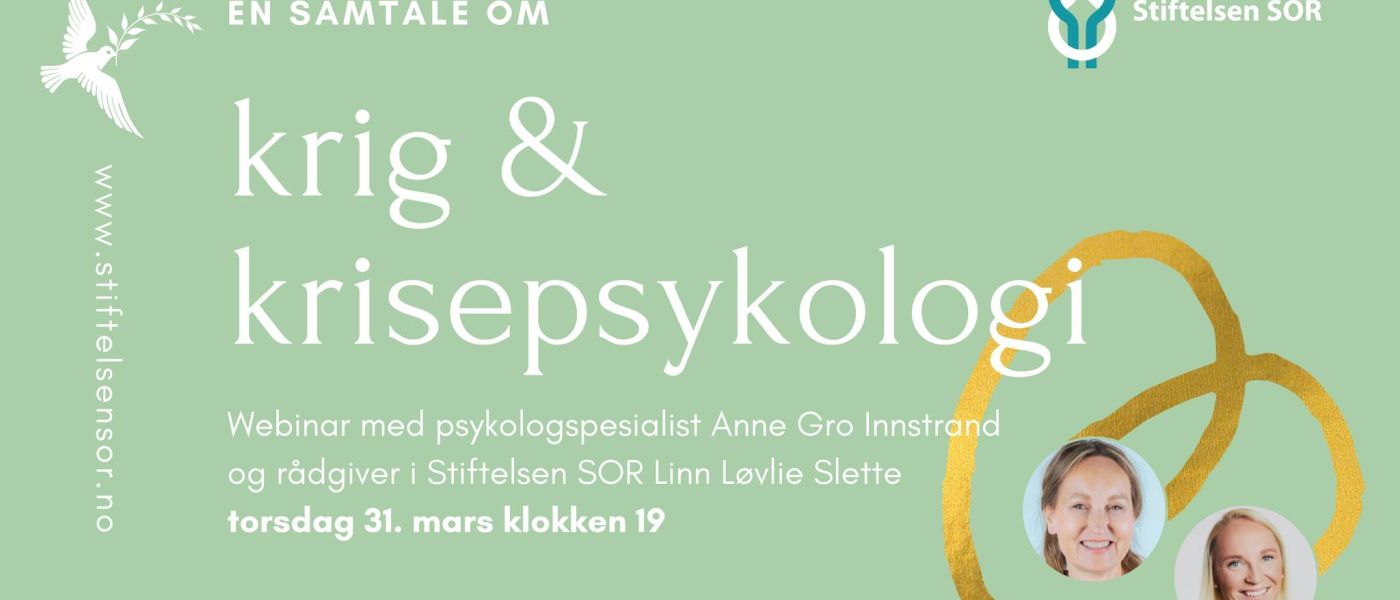 Stiftelsen SOR har invitert psykologspesialist Anne Gro Innstrand til en samtale med rådgiver i SOR, Linn Løvlie Slette, for å snakke om krigen: