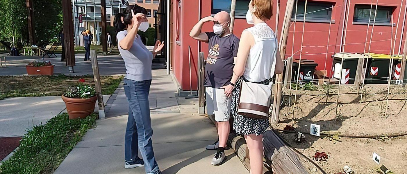Lars Magnus Jenssen, Toini O. Bratli og Antonio de Benedetto i hagen ved det nye Akademiet i Asti. Foto: Caroline Shøning