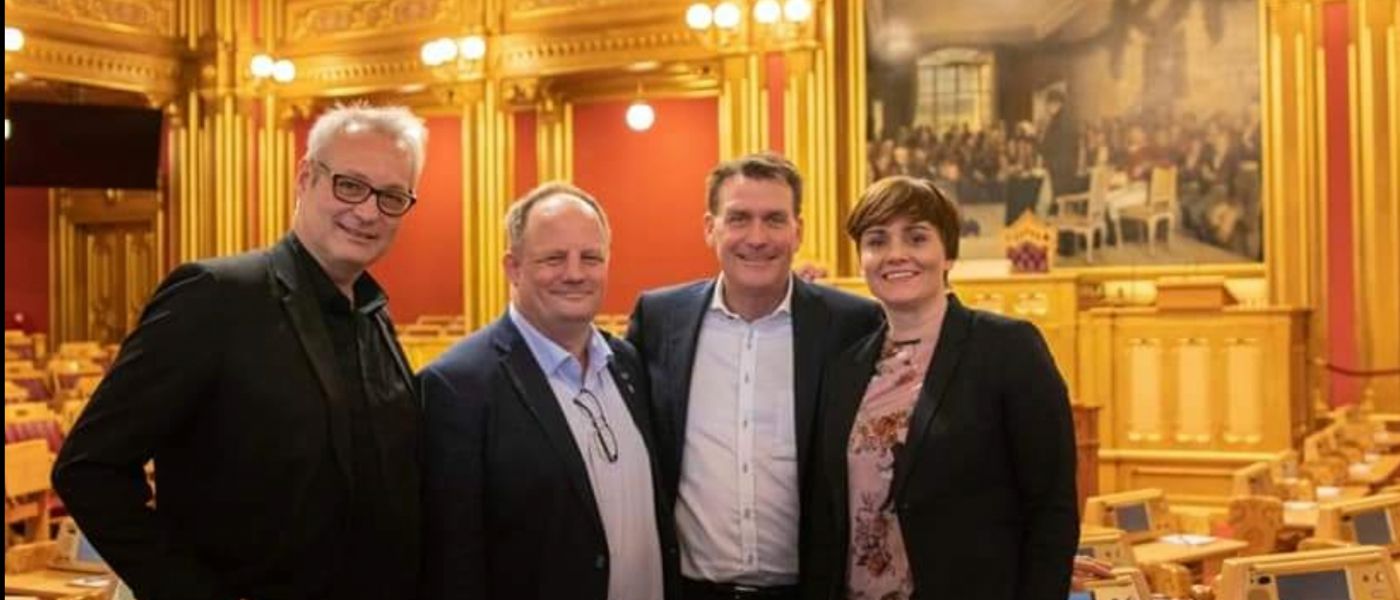 Fra venstre: Jarle Eknes (daglig leder i Stiftelsen HELT MED), Viggo Nordby Holtan (Holmestrand Høyre), Kårstein Eidem Løvaas, stortingsrepresentant for Høyre i Vestfold) og Margret Hagerup (stortingsrepresentant for Høyre i Rogaland).